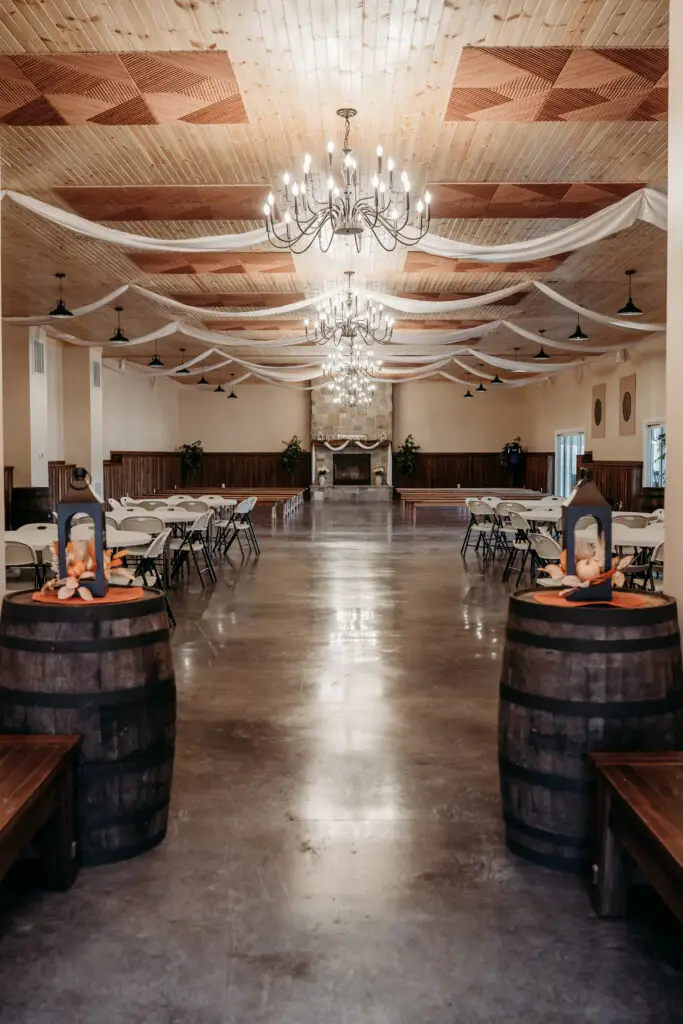 The beautifully renovated barn features nearly 4,000 sq. ft. of indoor space, ideal for year-round events. Experience rustic beauty combined with modern comforts.